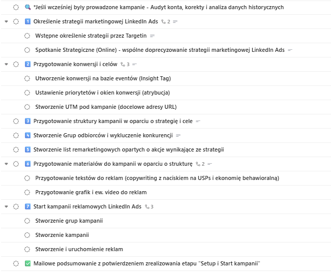 Następnie zbieramy wymagane dostępy, konfigurujemy LinkedIn Campaign Mangera i wdrażamy narzędzia do analityki.
